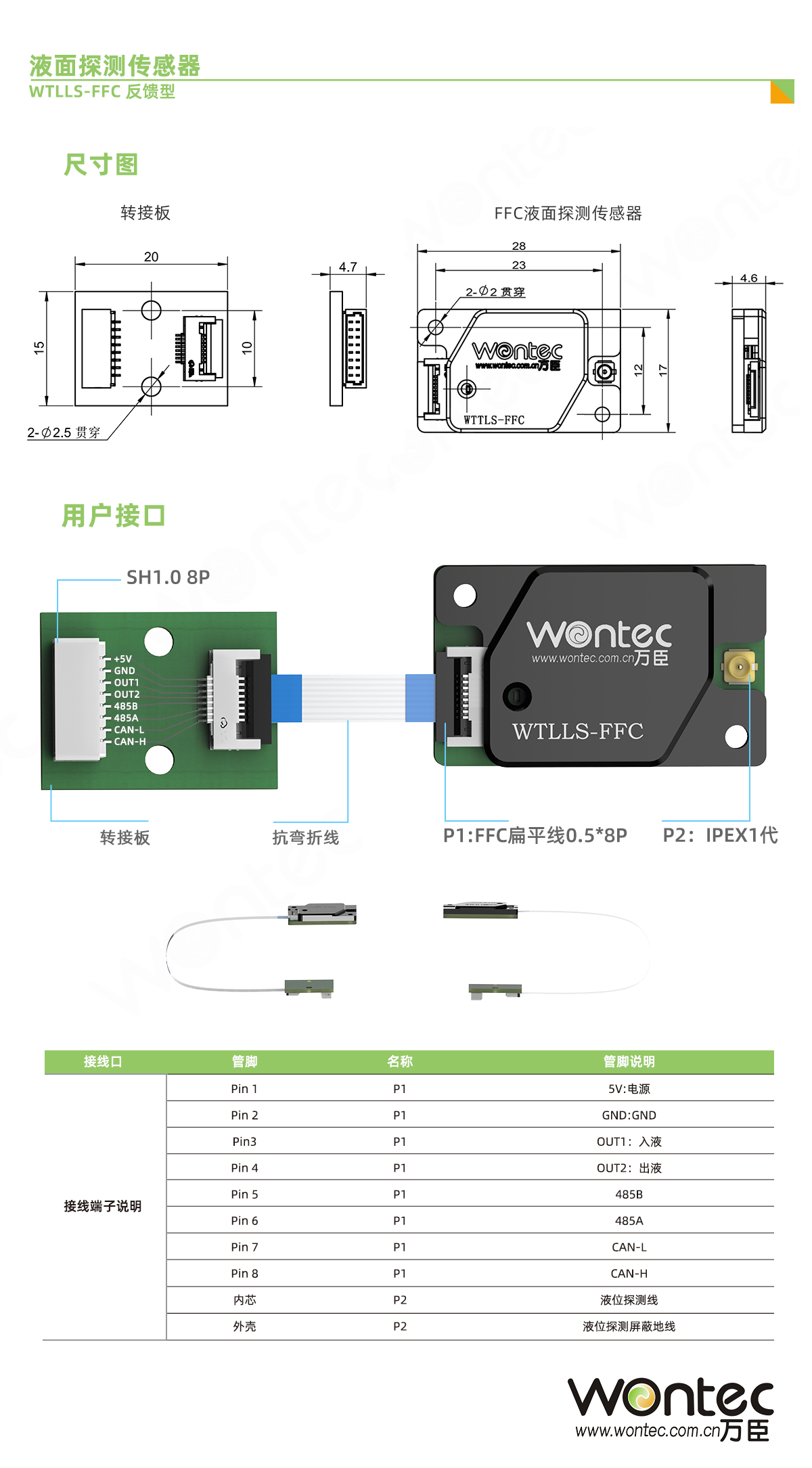 8Pin柔性FFC,卡扣式接口,抗弯折,更省空间;